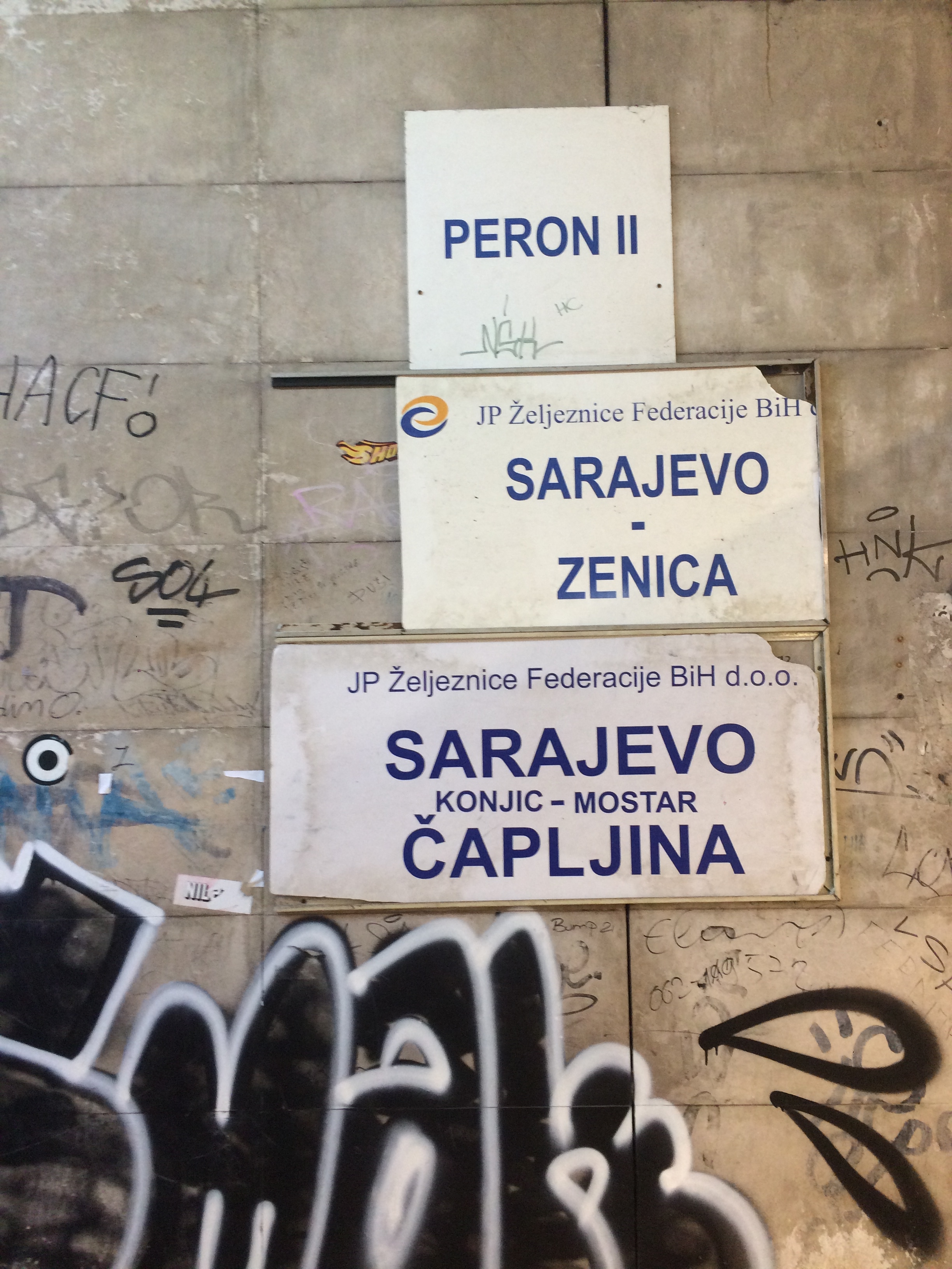 Bosnien-Hercegovina har ikke megen togtrafik rundt i landet, men til gengæld er her en af de smukkeste ruter, jeg har kørt. Banegården i Sarajevo ligner ikke andre hovedbanegårde. Her er 2 steder, hvor du kan købe kaffe, billetter købes i én af de 4 billetluger, hvor du er heldig, hvis blot 2 af dem har åbent. Det er muligt at købe togbilletten dagen før afgang, og bestemt en god ide, da køerne er lange i timen før afgang. Der er kun én daglig afgang fra Sarajevo til Mostar, og det er kl 7:15 hver morgen, og retur fra Mostar hver aften kl 19:15. Turen tager ca. 2 1/2 time og returbilletten skal/kan bruges inden for 6 uger. En retur billet fås for ca. 73 kr, plus 5 kr til pladsbillet. Husk at købe pladsbilletten.