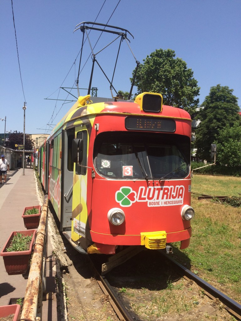 Sarajevos kollektive trafik system er velfungerende, overskueligt og billigt at bruge. F.eks. sporvejsnettet, som egentlig blev grundlagt af byplanlæggere fra den jugoslaviske tid, er generøst udtænkt. Det består af 6 hovedfærdselsårer som dækker hele Sarajevo. Linie 3 var den vi benyttede. Linie 3 bevæger sig midt i “Ulica Zmaja od Bosne“, (“Den bosniske drages vej”) fra lufthavnen mod centrum og retur. Hele ruten har 21 stoppesteder og tager 28 minutter. Prisen t/r er kr. 6,-. Begrebet myldretid forstyrrer ikke sporvognene, de kører stort set uhindret gennem byen. Billigt, pålideligt og hurtigt.