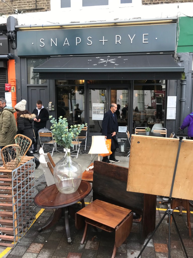 I Notting Hill ligger den danske Cafe Snaps & Rye. Også her er der godt besøgt og vi havde heldigvis bestilt bord til morgenmad en lørdag, hvor Portobello Roads kæmpe loppemarked/kunstermarked var godt i gang. Cafeen har en dejlig dansk stemning, med danske plakater på væggene, skind på stolene og forskelligt dansk porcelæn til serveringen. Her er plads til ca. 45 personer og ved en af væggene stod en stor reol med danske produkter, så som marmelade fra Den Gamle Fabrik og bøger om dansk hygge. Reolen blev flittigt studeret af gæsterne. Menukortet byder på diverse morgenmads/brunch lækkerier og et godt udvalg af dansk smørrebrød og forskellige wienerbrød. Cafeen åbner kl. 9. Når man er færdig med besøget, er det bare på med traveskoene og så ellers rundt i kvarteret og se pudsige forretninger, boghandleren fra Notting Hill filmen og de mange flotte pastelfarvet bygninger.