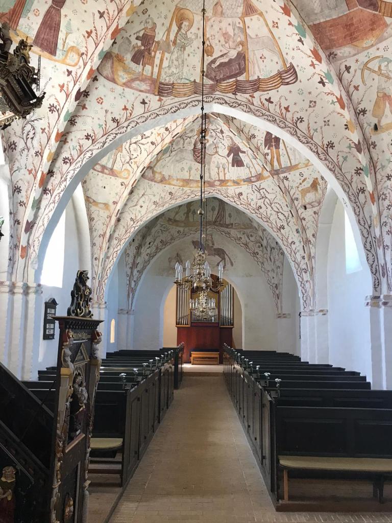 Møn byder på mange seværdigheder og efter en pause i den hyggelige Stege by, hvor der ligger nogle cafeer og gode ishuse, kan du køre 8 km videre til Elmelunde kirke. Den smukke hvide kirke ligger på en lille høj og er fra 1085, og dermed også Møns ældste stenkirke. Kirken er værd at besøge, idet det meste af lofterne er smukt dekoreret med kalkmalerier i flotte farver.