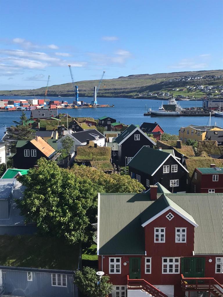 Vi havde valgt at bo hele ferien i Thorshavn på Hotel Hafnia, et 3-stjernet hotel med perfekt beliggenhed og kort afstand til de fleste ting i byen bl.a. den gamle smukke bydel og havnen. Lige over for vores hotel går en stejl sti 75 meter op og inde bag et par huse finder man en lille lysthave til minde om Færøernes første Nobelpristager Niels Finsen, som fik prisen i medicin i 1903. Hotel Hafnia har en lille café, hvor der serveres små retter alle ugens dage og i weekenden er en dejlig brunch på menukortet. På 6. etage finder man den anerkendte restaurant Panorama, der som navnet antyder, har byens bedste udsigt. Hver fredag (det meste af året) kommer den fantastiske Fiskebuffet på menukortet , et tilløbstykke i byen hvor man skal være hurtig ude med at bestille bord. Buffeten koster ca. 525 kr.