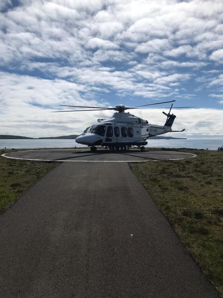 Ca. 2 km fra færgehavnen i Torshavn ligger heliporten, som styres af Atlantic Airways. De flyver til 10 byer og biletter bestilles hos http://www.atlanticairways.com. Man skal være ved pladsen senest 20 min før afgang og bagagen må ikke være for tung. Vi fløj til Klaksvik på 11 min og en enkeltbillet kostede 215 kr. og 107,50 kr. for pensionister. Det var min første helikoptertur og hvilken oplevelse! Man får øje på rigtig mange detaljer og det er lige ved at man kan se antallet af laks i de mange lakseruser. Turen hjem fra Klaksvik var med bussen, og denne rute kan varmt anbefales. En flot tur langs havet og igennem mange små bygder. Billetten koster 90 kr og igen er der halv pris for pensionister. Helikopteren lander i Klaksvik oppe over byen og det er en smuk udsigt, man får ned til byen. Klaksvik er den næststørste by med 5.000 indbyggere og er centrum for fiskeindustrien på Færøerne.