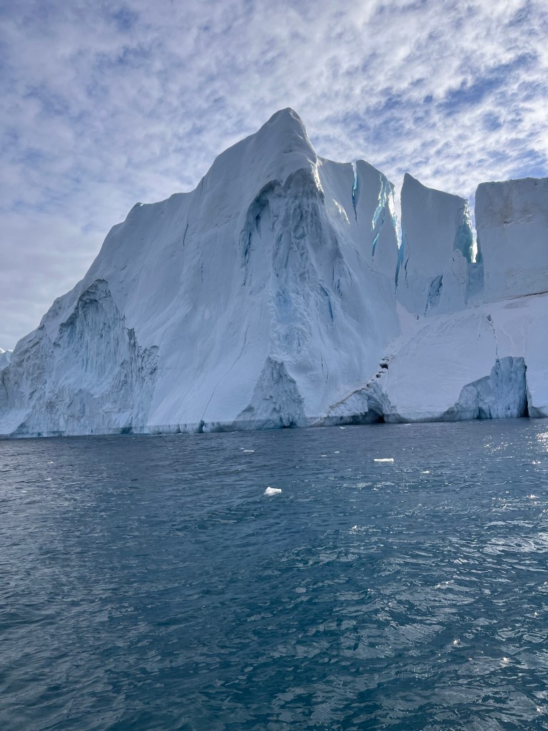 Ilulissat er Grønlands mest kendte by og er på UNESCOs verdensarvsliste pga. den fantastiske fjord med utallige isbjerge. Næsten lige meget hvor du står i byen, kan du skimte Isfjorden. Jeg havde gudskelov bestilt en to timers isfjordstur på nettet hjemmefra gennem Albatros Arctic Circle til 600 kr. Isfjords- og slædehundsturene er de første, der bliver udsolgt. Bestil dine ture i god tid hjemmefra. Min tur startede med, at vi blev kørt hen til havnen og herfra gik vi 200 m på det frosne havvand til en lille turistbåd med plads til 12 personer. Guiden talte dansk og engelsk. Med det samme man er ude fra bugten kan man se de første smukke kæmpe isbjerge, hvor nogle kan veje op til 35.000 tons og en del af de store isbjerge sidder fast på Isfjordens havbund. Aldrig har jeg set så smuk en natur og sagde flere gange bare “wow”. Jeg ville gerne have været ude på havet en gang mere, men alt var udsolgt.