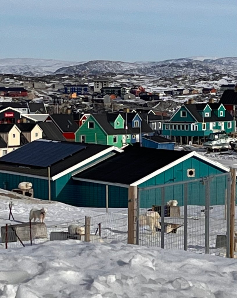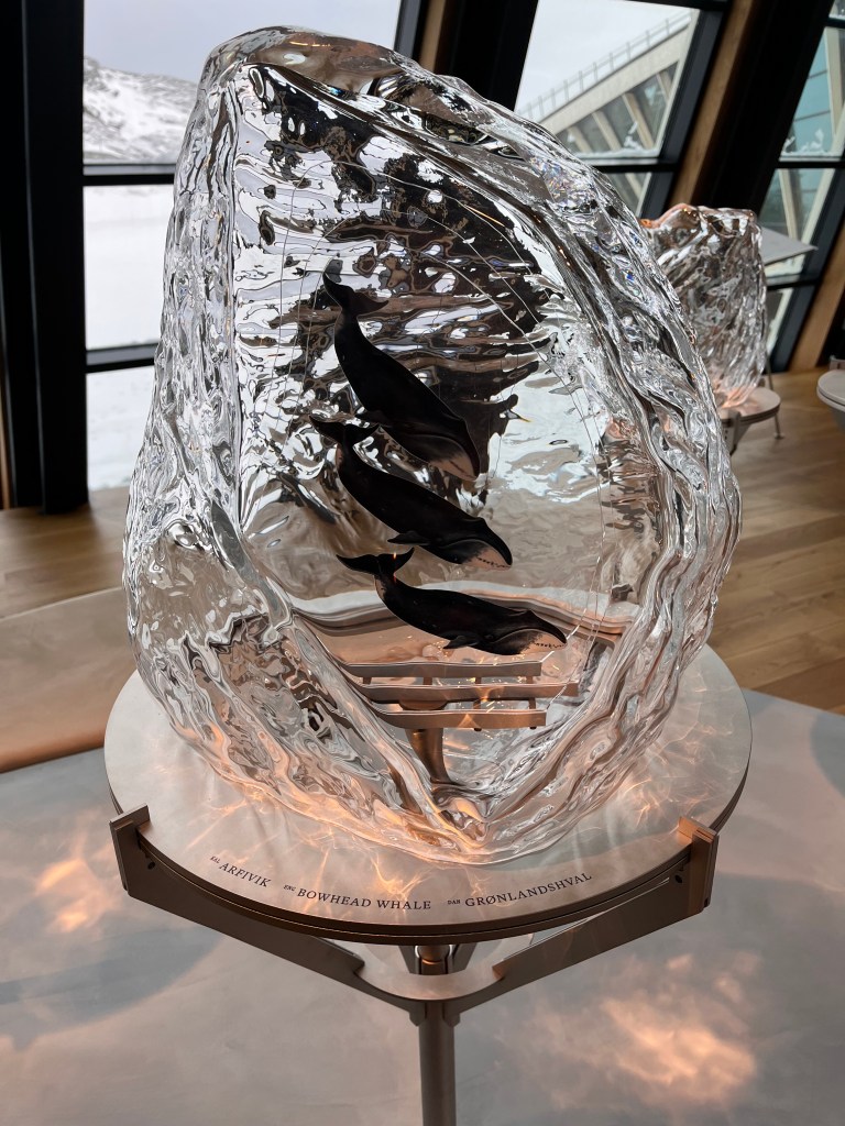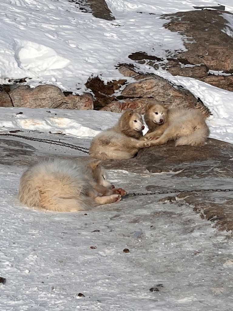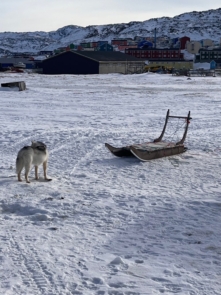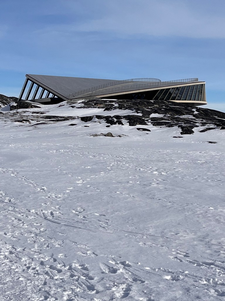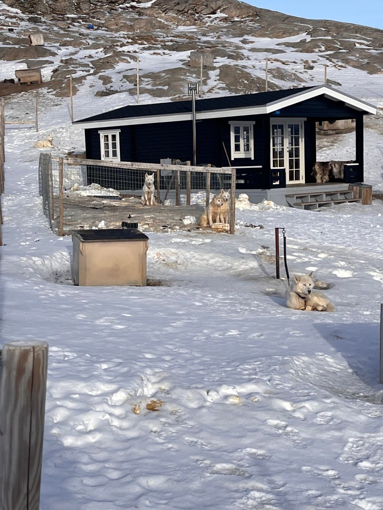 En anden dag på rejsen gik jeg turen ud til det nyåbnet Isfjordcenter i høj sol og kiggede lidt på slædehundene. Centeret stod færdig i 2021 og er et smukt syn med sine store vinduer og hele træbeklædte sider, der ligner en kæmpebølge. Du kan gå oppe på taget og nyde endnu en fantastisk udsigt. Indgangen koster 100 kr og du skal have medbragte sutsko på eller finder et lånepar i din egen størrelse. Centret var meget nørdet og gør dig garanteret meget klogere på is. Jeg var særligt vild med filmen fra et sted langt inde på Indlandsisen, hvor der ligger et kæmpestort område både oven på isen og under isen. Her tager forskere fra hele verden uendeligt mange prøver af isen og opdager nye ting hele tiden. Centret har en lille café, hvor der sælges varme drikke og få kager.