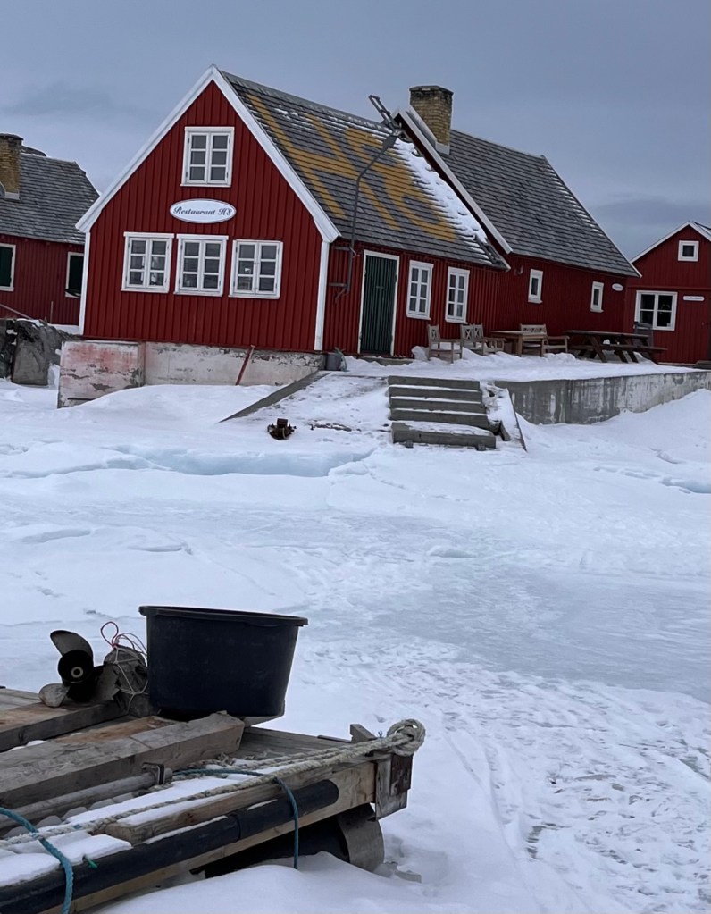 Vi, turgæsterne, tog imod ekstra varme heldragter og lange liner før, vi gik ud på isen, hvori der blev lavet huller. Den næste times tid kæmpede vi mod kulden med varme drikke og håbede at der bare var én enkel fisk, der ville bide på krogen. Men nej, ingen fisk bed på og vi skyndte os op i varmen hos Restaurant H8, hvor den lækreste fiskesuppe ventede. Restaurantens navn, H8, stammer fra 2. verdenskrig, hvor amerikanerne fløj med mad og andre fornødenheder til Grønlænderne. For at vide hvor de skulle kaste lasten ned, blev der langs kysten malet H og et tal. I Ilulissat var deres tagnummer H7. Turen kan anbefales for et indblik i, hvordan livet leves i en af de mange små bygder.